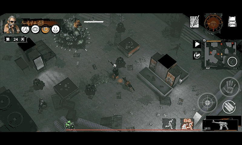 2、体力:体力为零时玩家战死。体力只有被攻击时才会流失,脱离战斗则自恢复。制造的攻击道具则可以更快击杀僵尸,也间接影响体力流失。