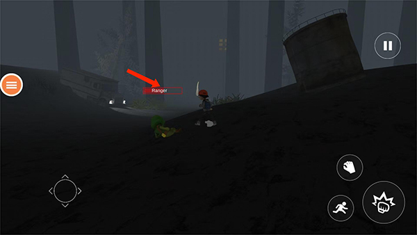 2、如图,左边为方向键可以前后操控小男孩,右下角【拳头】图标为攻击键,