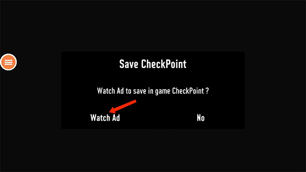 2、点击后,系统会提示【Save Checkpoint】保存检查点,点击【Watch Ad】即可进行存档。