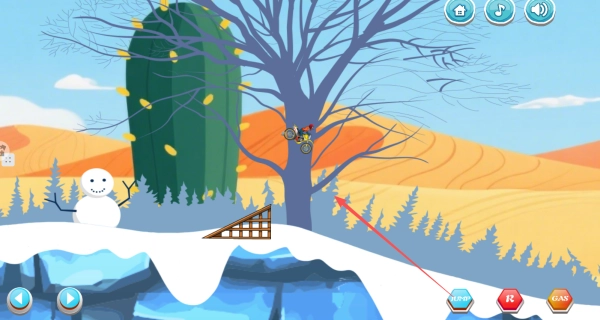 2、遇到障碍时点击上方跳跃按钮实现跨跃,确保车辆能够持续前进。