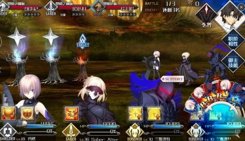 在《FGO》的战斗系统里,对从者下达的指令会以指令卡的形式呈现,战斗采用回合制的指令战斗模式展开。整个战斗流程分为战术阶段和指令阶段,根据玩家的选择,从者会依次发动攻击。己方完成攻击后,就轮到敌方行动;敌方行动结束后,一回合便宣告结束。
