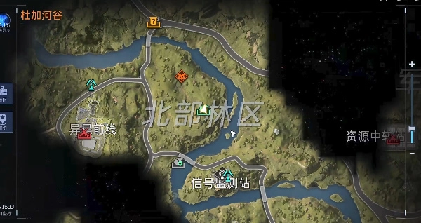 1、首先玩家需要前往杜加河谷地图里的北部林区信号塔位置。