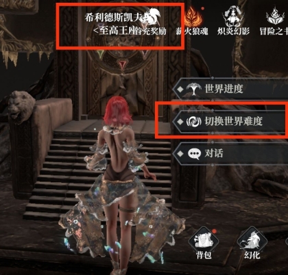 首先在资源购买方面,找到图文中的至高王座,点击它来切换世界难度。需要注意的是,目前只开放了两个难度,即普通难度和古魂Ⅰ难度,所以大部分资源都可以购买两次。