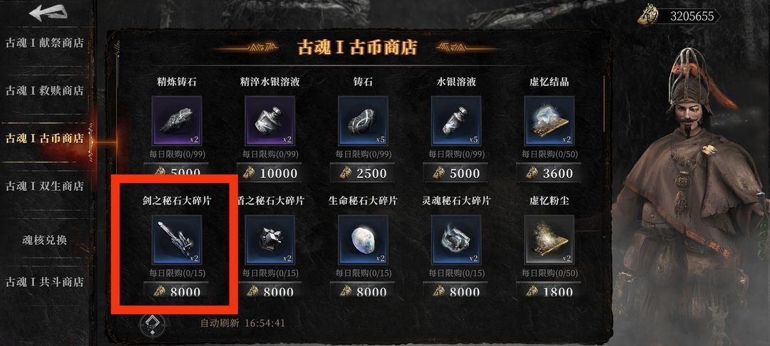 古币商店: 每日我个人建议必买-剑之秘石打碎片(魂核进阶剑之秘石消耗量较大) 进阶满了不买也行