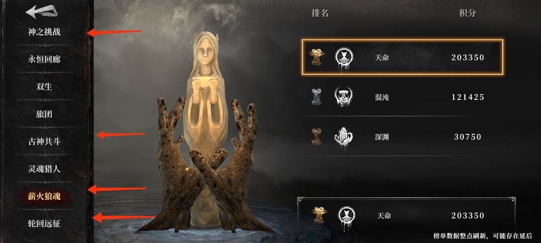 其中薪火狼魂、神之挑战这两个玩法,可以在每次奖励结算快结束的最后几小时甚至几分钟时冲击排行榜第一名,这样能额外获取更多资源。这些奖励在前中期阶段相当关键,而且后续魂石的持续消耗也是一笔不小的开销。