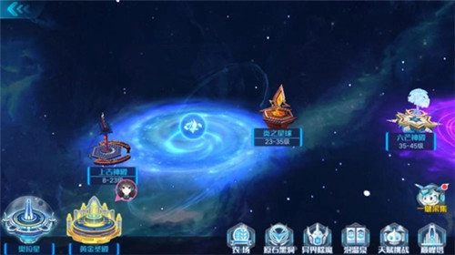 2、在主界面点击【地图】按钮,接着在左下角找到【奥拉星】和【黄金圣殿】这两个选项,选择进入“黄金圣殿”。