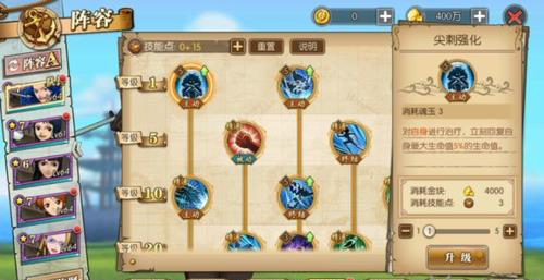 技能加点,不得不说,双手指全身上下几乎都是神技,但是有的技能十分奇怪,例如这个,满级是回20%自身最大血量,但是双手指血量成长只有c,点满了血量被动也是效果不明显,笔者曾经试过走卡普那种回血流,发现没用,防御和血量太低了,所以这个技能不推荐