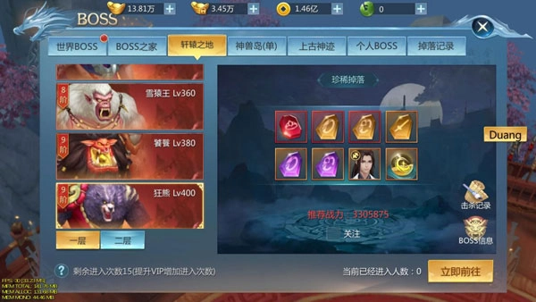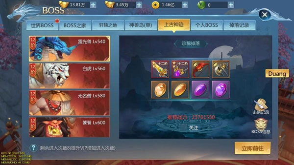 ② 在场景中击败特定 boss 会触发隐藏 boss“上古神使”,上古神使能掉落完整的神器,这可是提升战力的关键呢;