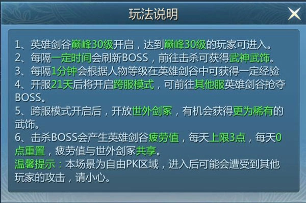 1. 每天拥有 3 点疲劳值,每击杀一个 BOSS 即消耗一个疲劳值,每天凌晨 0 点重置疲劳值;
