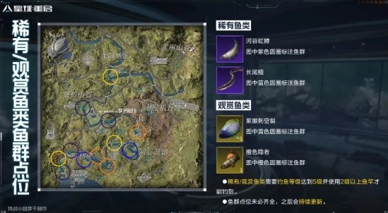 ——你知道世界频道求助里最常出现的问题是什么吗?答案就是,钓鱼玩法解锁后,每天都有很多幸存者在世界频道询问稀有鱼群的位置(看来休闲玩家的数量确实不少),这里梦千就为大家带来杜加河谷的稀有/观赏鱼群点位图。*后续的地图信息都会在社区-wiki发布,大家可以直接去查看(社区可以从移动端微端界面右侧进入)