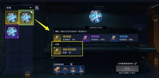 在装备改造的熔炼获取碎片界面里,能够对40级及以上的能源核心进行熔炼操作(熔炼时需要额外消耗部分半成品材料),之后会随机得到数量和品质都不确定的装备数据(该界面会展示概率预览信息)。