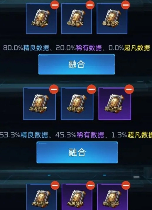 在融合时,放入的材料品质越高,获取高品质数据的概率也就越高——