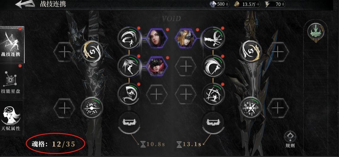 2.魂核时需要消耗【魂格】,每个魂核拥有数量不等的【魂格】,至战技连携中的魂核总魂格数不得超过当前战技连携魂格上限。