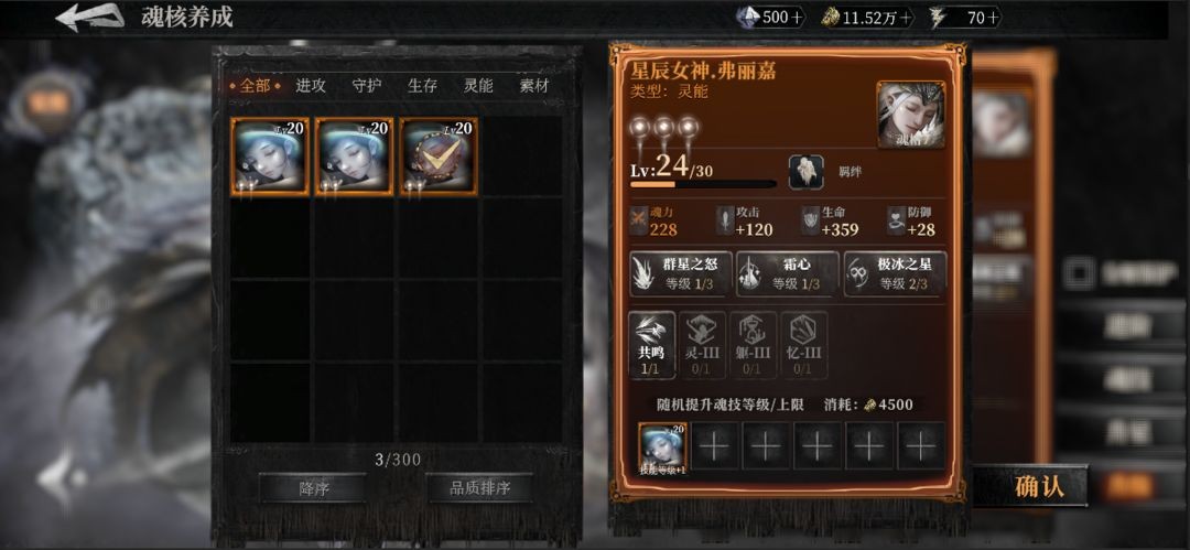 需要特别注意的是,升星会同时吞噬已有魂核的经验,附带提升魂核技能等级。所以有本体建议优先用来升星,而非升级或魂核技能升级。