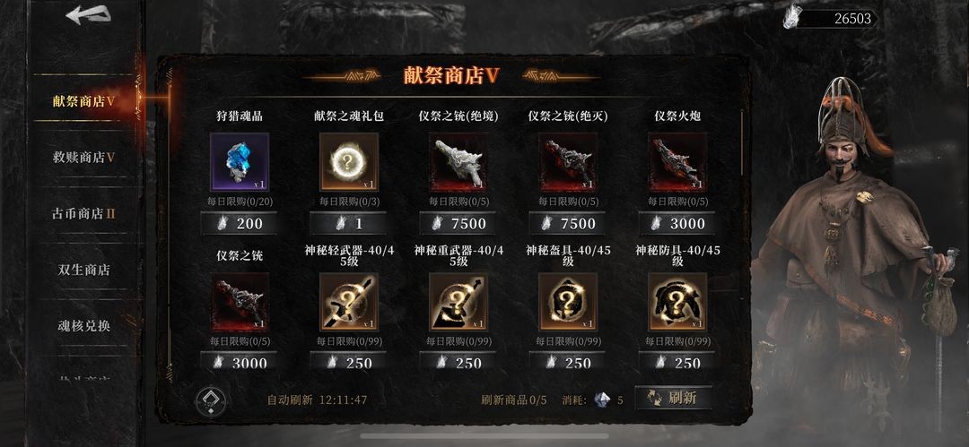 献祭和救赎这两种石头的主要用途之一是兑换道具。黑市里设有救赎商店与献祭商店,商店内的物品会随着阵营声望等级的提升而更新。前期主要是一些随机的武器装备,到了后期还会出现用于刷副本的狩猎魂晶,另外还有魂石福袋——花费1颗石头就能随机开出一些魂石,毕竟蚊子腿再小也是肉嘛。