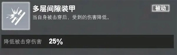 以防御能力为核心设计的梅卡瓦主战坦克,其被动技能“多层间隙装甲”具备独特防护机制——即便装甲被敌方火力击穿,仍能削减25%的所受伤害。