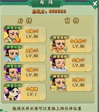 六娃的减防效果会依据出手顺序来生效,释放得越早,队友就能更快地打出爆发伤害,所以把它放在前面能让团队的输出效率达到最高。大娃是前排的核心,主要负责承受伤害和把控控场的节奏;二娃、四娃、五娃的站位比较灵活,可以根据敌方的阵容进行小幅度调整。三娃的护盾能持续两个回合,而怪物一般需要两轮普通攻击才能把怒气攒满,到了第三回合正好是怪物触发怒气技的时候,护盾就会消失,如果把三娃放在前两位,实际的格挡收益就会降低。因此更适合把它放在后排靠前的位置,这样既能保证自身的安全,又能在关键的时候提供防护支持。
