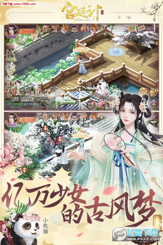宫廷计是一款集立体宫廷斗争、模拟与养成为一体的游戏。它有着唯美逼真的宫廷实景和高精细致的人物建模,玩家在游戏里能体验到移步换景、日夜交替的真实宫廷生活。游戏采用多视角多线剧情并行的模式,权谋暗斗与恩怨情仇相互交织,一场真实又残酷的宫廷大戏正在拉开帷幕。最让人难以抗拒的是游戏里的服饰,无论是男女老少的服装都精致华丽、风格唯美,衣带飘飘,这部分的魅力估计大部分女生都无法拒绝。