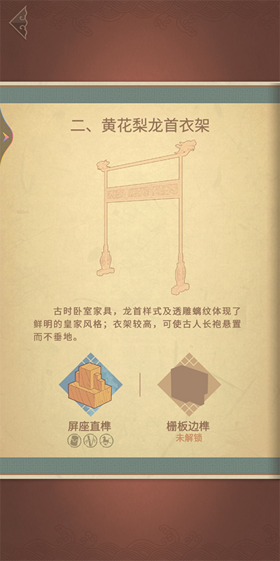 1、黄花梨龙首衣架属于古代卧室家具,其龙首造型与透雕螭纹彰显出浓郁的皇家气派。此衣架高度较高,能让古人的长袍悬挂时不垂落至地面。在本章节中,我们会针对这件家具的关键结构部位展开分析,探寻其中的榫卯玄机。