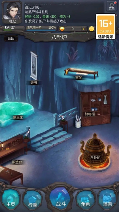 中你可以修炼,练气,金丹,元婴,成仙。