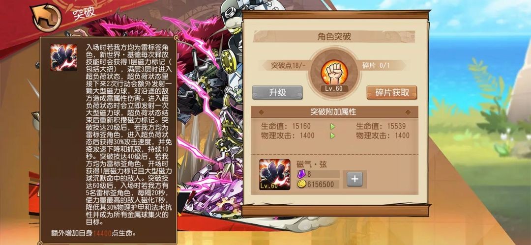 ③:突破技达40级后,若我方均为雷标签角色,开场时获得1层磁力标记且大型磁力球沉默命中的敌人。