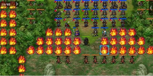 流程:开局赵雪芸朝营地方向奔去,马云绿则向右移动至指定位置,以此触发曹操的伏兵(马云绿配备我王大剑,具备击退敌人的能力)。随后将敌人引至左侧山地的小兵处,进而触发火攻机制。