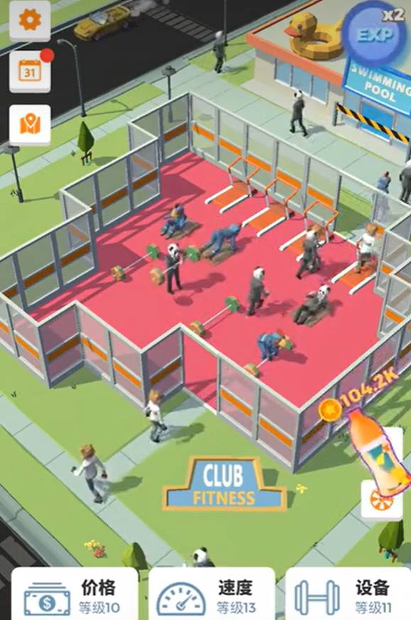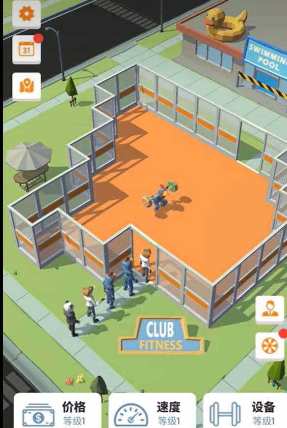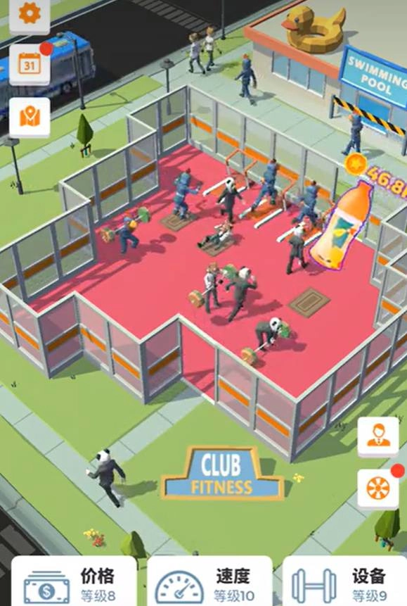 1、玩家负责健身房的日常运营,包括升级设备、调整收费标准、维护场地秩序,通过优化管理提升营收与顾客满意度。