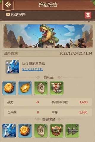 ②在狩猎报告中可以查看每次狩猎的战利品获取情况,每个等级的首次成功狩猎可以获得额外的首破奖励。