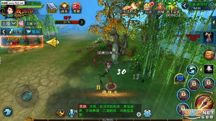 2、万人同屏竞技PK 激情冲锋纵横三界,骑乘式作战模式,让你在冲锋陷阵中感受最热血的PK对决。5000VS5000万人同屏即时PK,告别回合制的等待,杀人爆装畅享酣畅淋漓的战斗,诛仙屠魔,天上地下唯我独尊。
