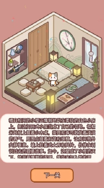 4、收集通关获得的星星奖励,在商城解锁特殊家具与猫咪服饰,丰富您的设计素材库。