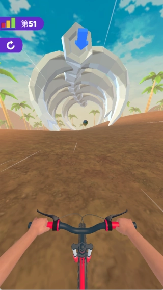 1、在别具一格的赛道里穿梭,应对多样地形与障碍,灵活调整骑行策略,同时探寻隐藏路线,解锁更多探索乐趣。
