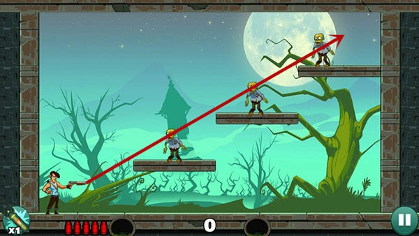 愚蠢的僵尸是一款很精彩有趣的射击,和愤怒的小鸟是差不多的,你和僵尸们都是站着不同的,通过瞄准和反弹的方式来消灭僵尸吧,还有一些道具可以利用呢。