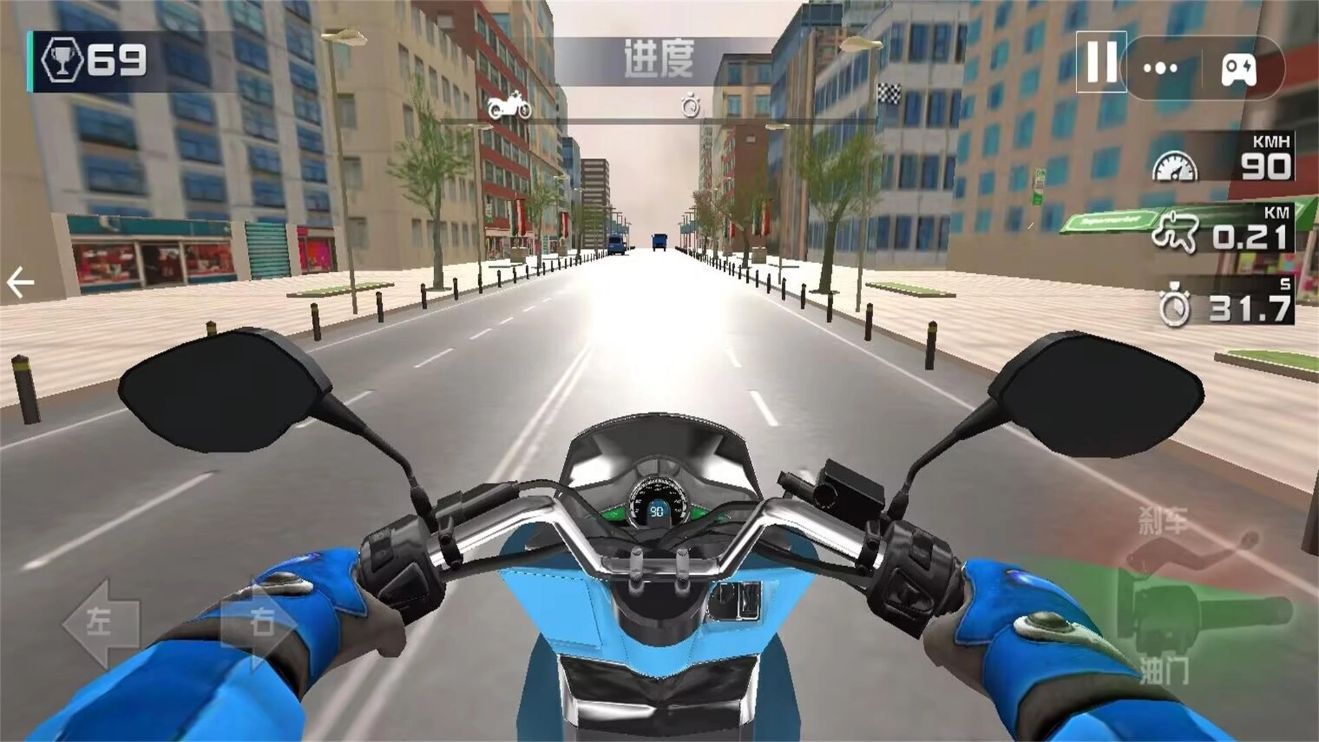 1.驾驶摩托车穿梭于各类城市街道赛道,你得灵活避开形形色色的障碍物,以最快速度完成关卡挑战。