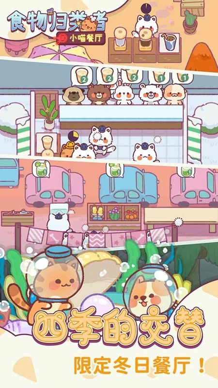 食物归类者是一款卡通风格的休闲模拟经营游戏,玩家将化身为一家餐厅的猫咪老板,需依据顾客的不同需求,制作出风味各异的料理。在游戏里,玩家要通过升级餐厅设备和烹饪美味料理来吸引顾客,并用赚取的经费升级餐厅,努力打造出最豪华的餐厅。