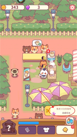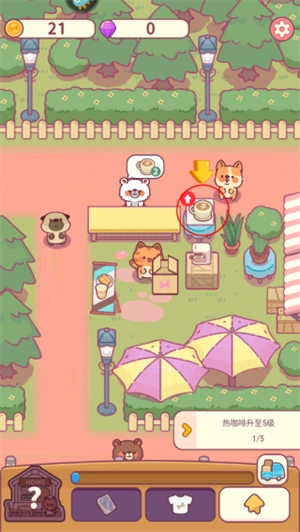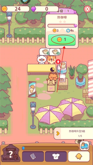 2、点击任务后会提示完成任务的具体操作方法,例如升级热咖啡时,只需点击咖啡旁边的升级按钮即可。
