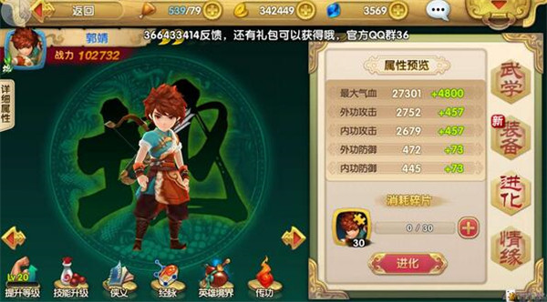 2、使用真气丹可对每个穴位注入真气。注入真气可使该英雄获得相应的属性加成。