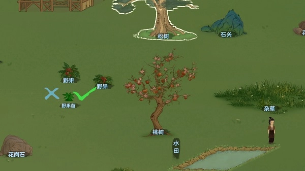 分配一对小儿和妇女,让他们专门负责采集浆果,这个组合要固定下来,雷打不动,毕竟这是粮食的保障,口粮再省也不能省。(而且采集浆果时伴生的紫桃能恢复精力,就是左上角那条蓝色的能量条;紫桃还能卖给商人,10铜币一个,属于硬通货)(粉桃则可以用来开家宴)【和其他生存类游戏不同,这里的浆果还挺赚钱的】【接下来就是偶尔留意一下和老爷爷搭档的人,看他有没有学会技能。一旦学会,就换另一个劳动力去跟着学习】