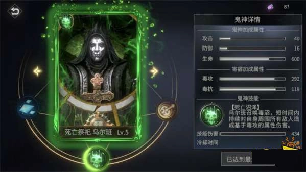 4、多多强化,如果还是打不过,再可以强化装备,最高到10,花点金币和材料,费用不高,肝几把就来了。 5、鬼神选择,个人喜欢用毒,打断能力比较高,也可以用冰冻。