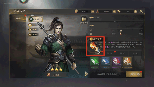 6、在武将详情中找到并点击红色方框内的按钮选项进行一系列操作;