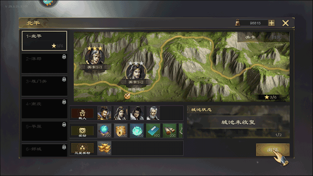 9、现在,继续点击你的新武将、点击出征、关闭界面;