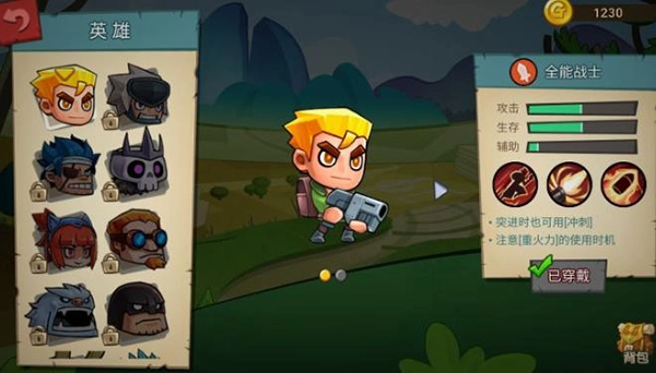 在完成新手引导之后,会赠送一位英雄—全能战士!剩余的10位英雄都需要通过内的金币购买。