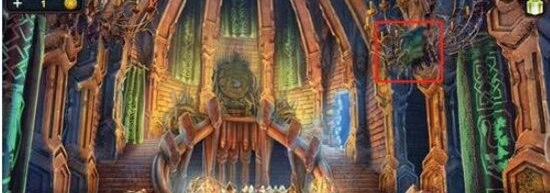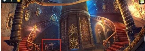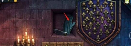 第三个龙纹碎片的获取方式是:从大厅往左走,找到图一中标注的位置并点击,接着点击那两把剑两次,就会有一个龙纹碎片滑落下来。