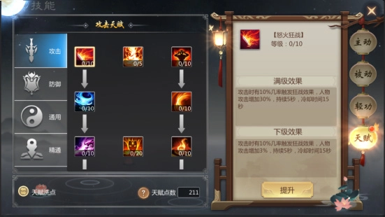 天赋技能需人物完成四转方可开启,四转后每提升一级便能获得一个天赋点,学习天赋则要消耗一个天赋点。