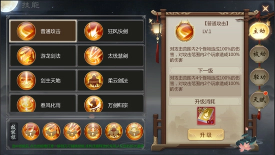 主动技能总共包含8个,其中有1个普通攻击、4个普通技能以及3个转职技能。这些转职技能需要完成对应的转职任务后才能解锁。