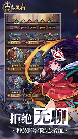 《点点勇者》是一款放置卡牌类游戏,战斗采用回合制机制。玩家通过收集大量卡牌角色,能够部署更强大的作战阵容,助力自己更快脱离当前困境;组建战队的过程,还会让玩家收获满满的成就感与满足感,得以在此大显身手。