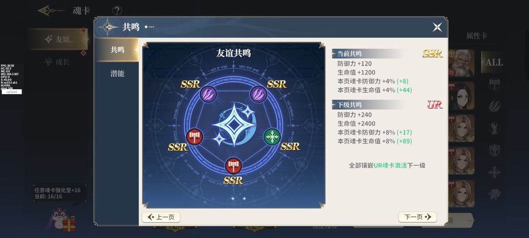 当所有装备的魂卡都满足特性要求时,共鸣属性就会被激活。若要提升共鸣属性,玩家需要将自己某个羁绊之轮里的所有魂卡品质进行提升。举个例子,要是玩家镶嵌了4张SSR品质的魂卡和1张SR品质的魂卡,那么激活的共鸣属性就属于SR级别;而当镶嵌的5张魂卡都是SSR品质时,激活的共鸣属性则为SSR级别。简单来说,共鸣级别的高低是由所镶嵌魂卡中品质最低的那一张来决定的。