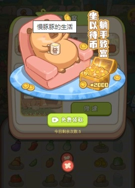 每天都有5次的机会可以观看广告,一次广告2000金币。