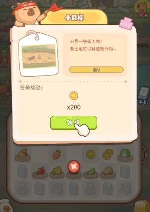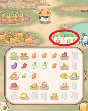 5、点击成熟的萝卜可作为格子内的物品,通过开垦更多土地进行种植,就能合成更多订单来赚取金币。
