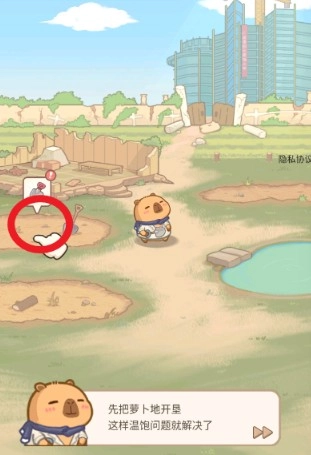 2、点击土地开垦萝卜地,解决温饱问题。