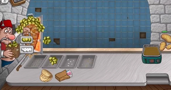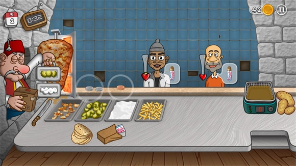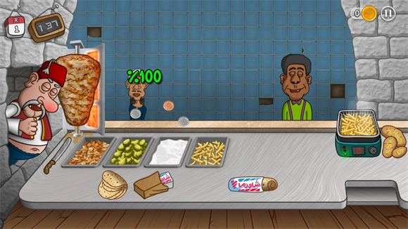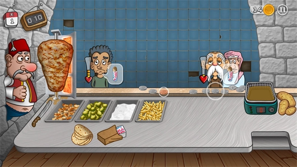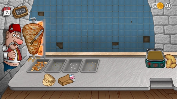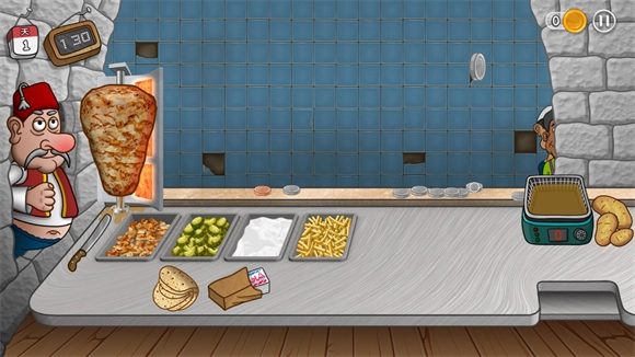 7、在有限的时间内完成更多的订单,不断解锁升级来打造最棒的沙威玛卷饼店。